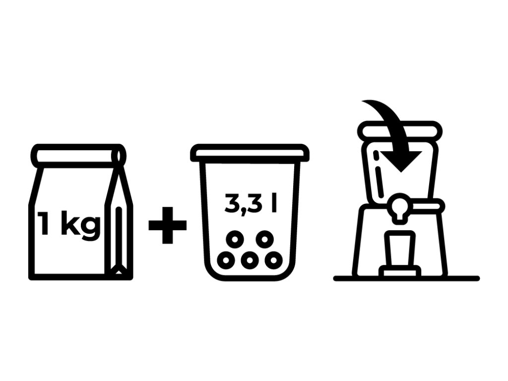 Práškový koncentrát ledové kávy GRANITA smíchejte s 3,3 litry horké ne vroucí vody a získáte lahodný čokoládový nápoj.